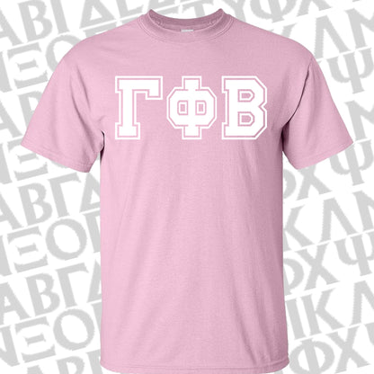 T-Shirt comes with 5-inch Greek Symbols printed on the front in the Varsity font. This is a Gildan Unisex/Men's Sized T-Shirt. Please select your organizations Greek letters above - we will only use the Greek Symbols on the shirt.
