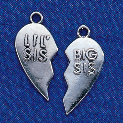 This is a Big Sis/Lil'Sis heart shaped charm that breaks into 2 halves. *Presently, due to the high market prices in gold, this product is only offered in sterling silver.* Rush service is available for a fee of 20% of total.
