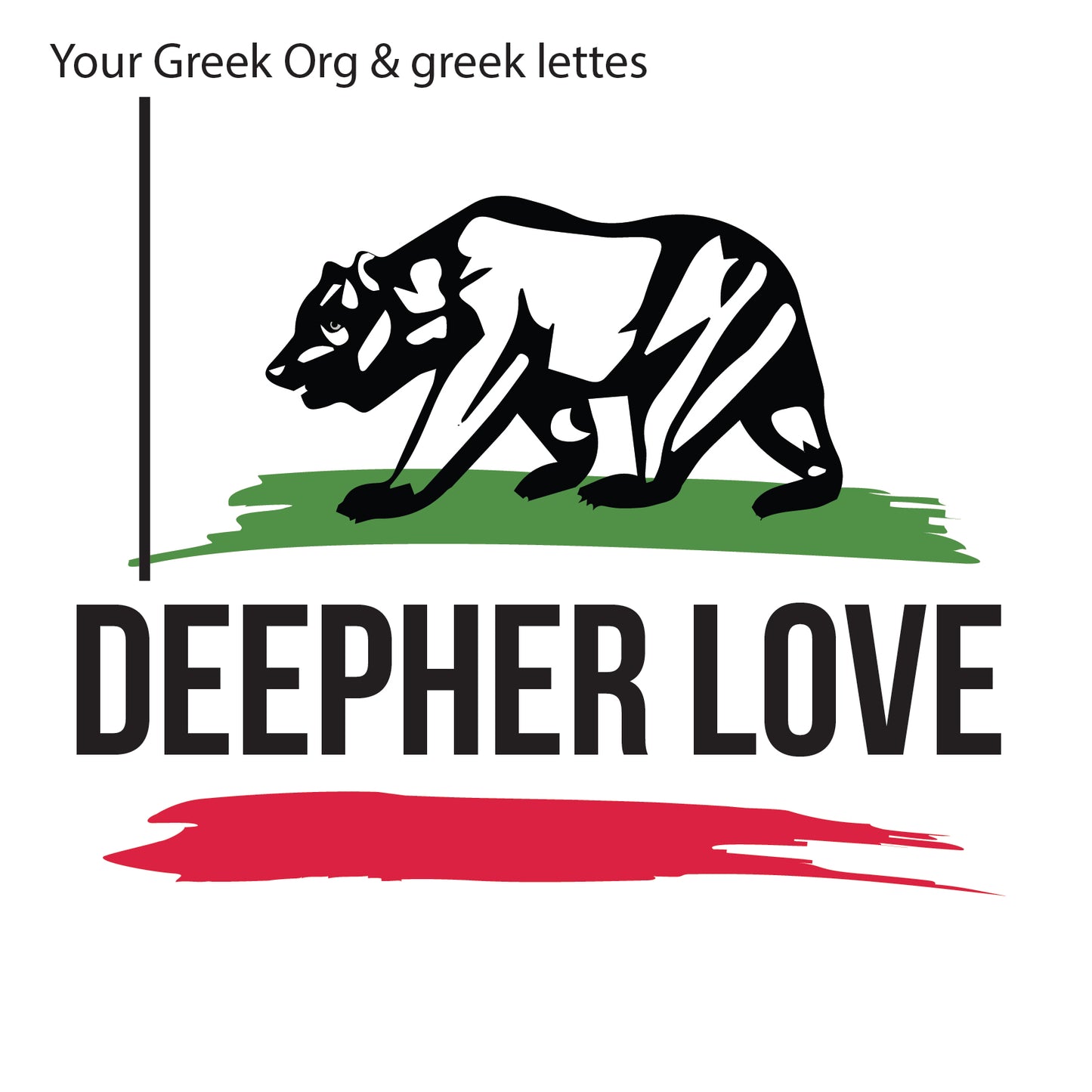 This Sorority California Bear design features your Greek Organization written in the middle of the California Love Bear Design. Perfect addition to any Greek Fraternity or Sorority's Summer Wardrobe!