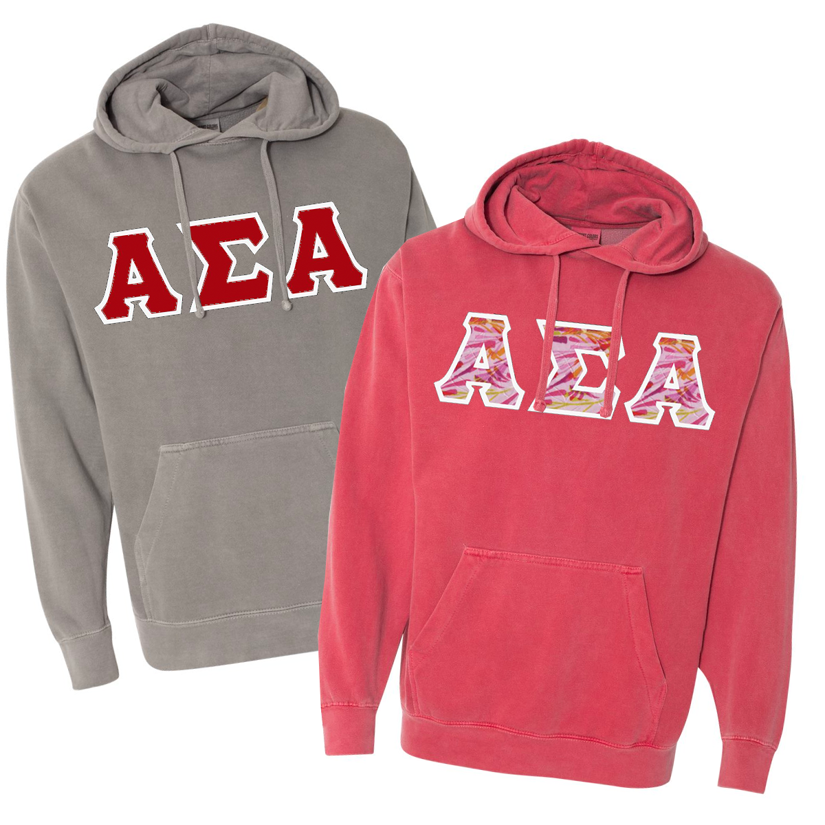 Enjoy a classic style with a two-pack of Sorority Comfort Color Hooded Sweatshirts. Each shirt is custom made and showcases sewn-on lettering and sorority designs in beautiful colors. Soft style comfort ensures all-day wearability. Get two shirts in one great deal!