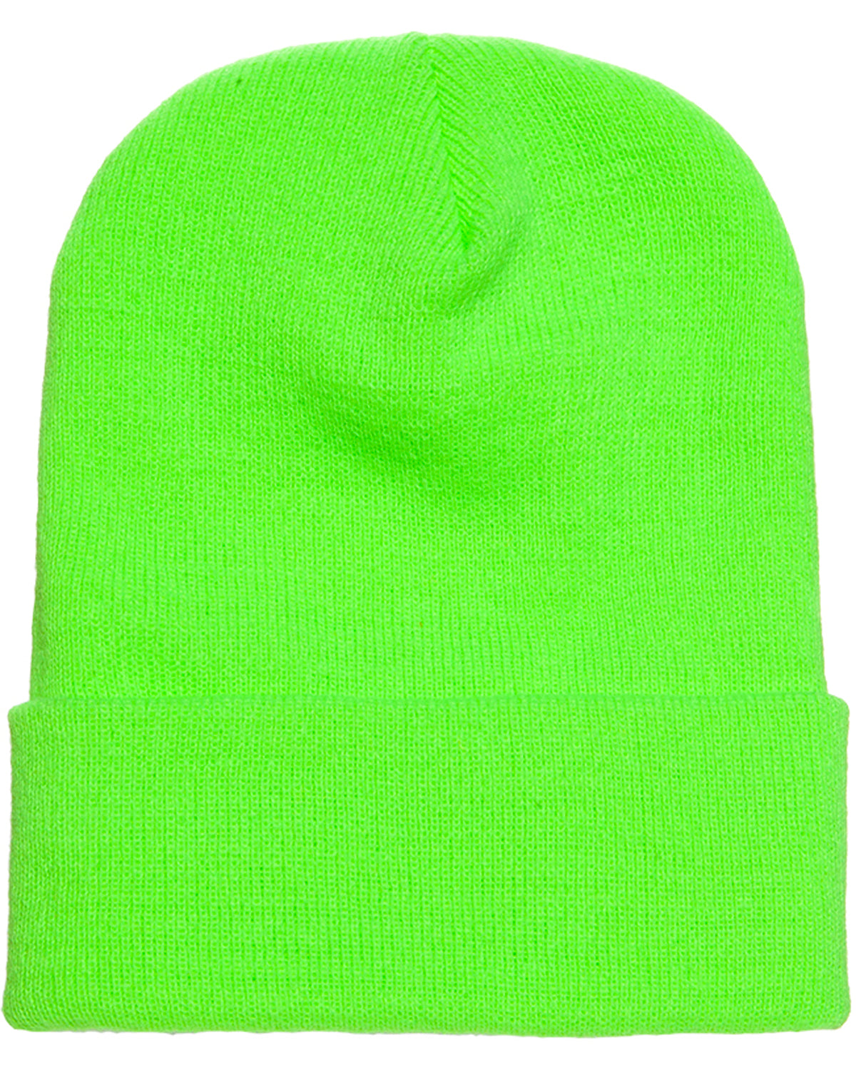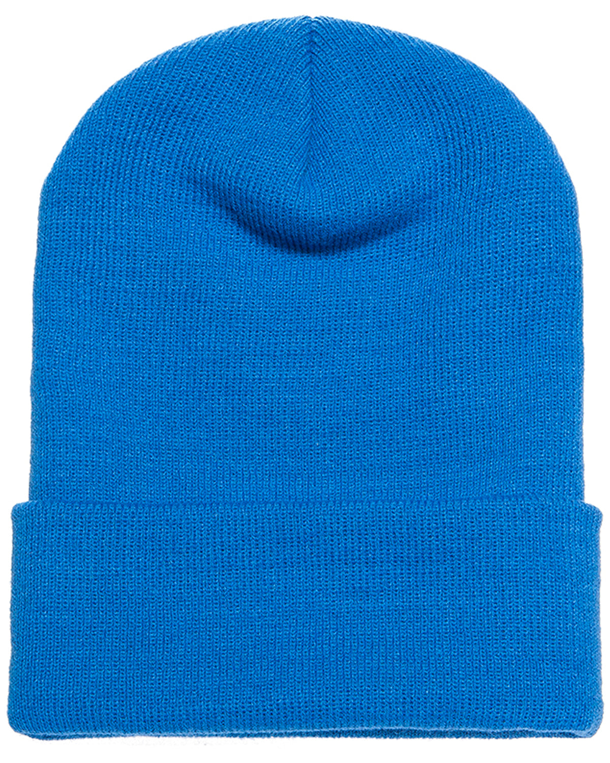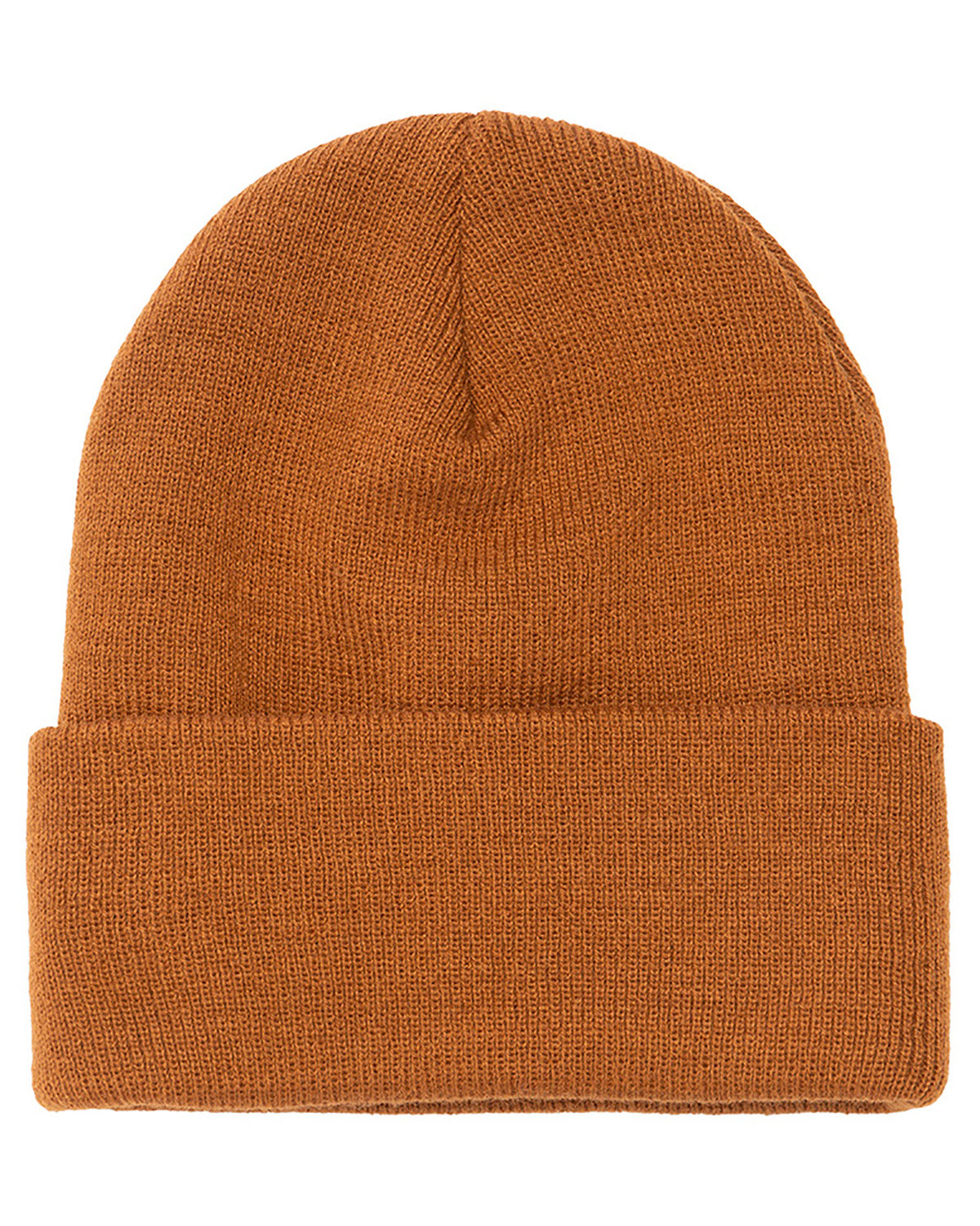 Cuffed Beanie Details: Yupoong brand; 100% turbo spun acrylic knit; hypoallergenic; 12-inch in length; hand washable.