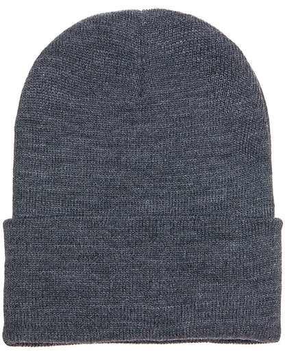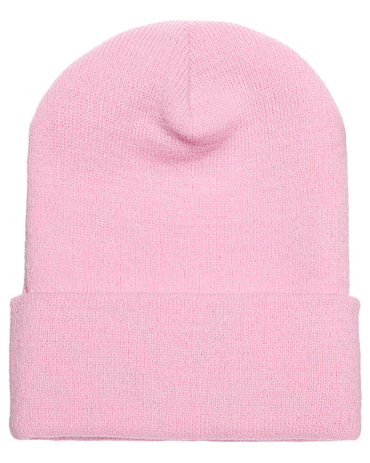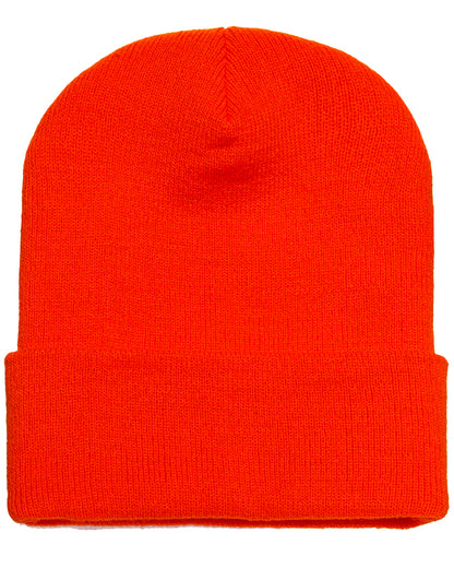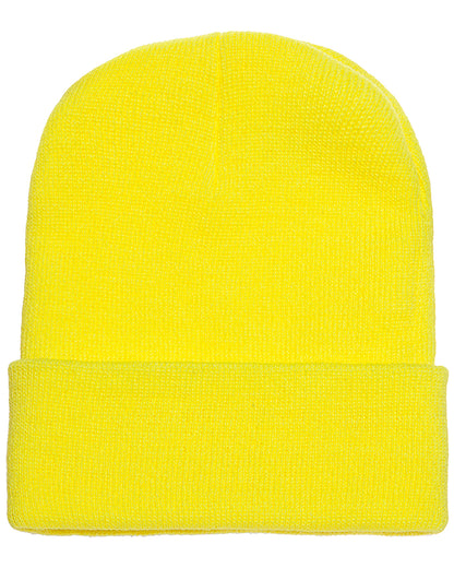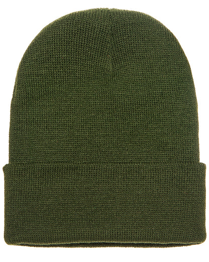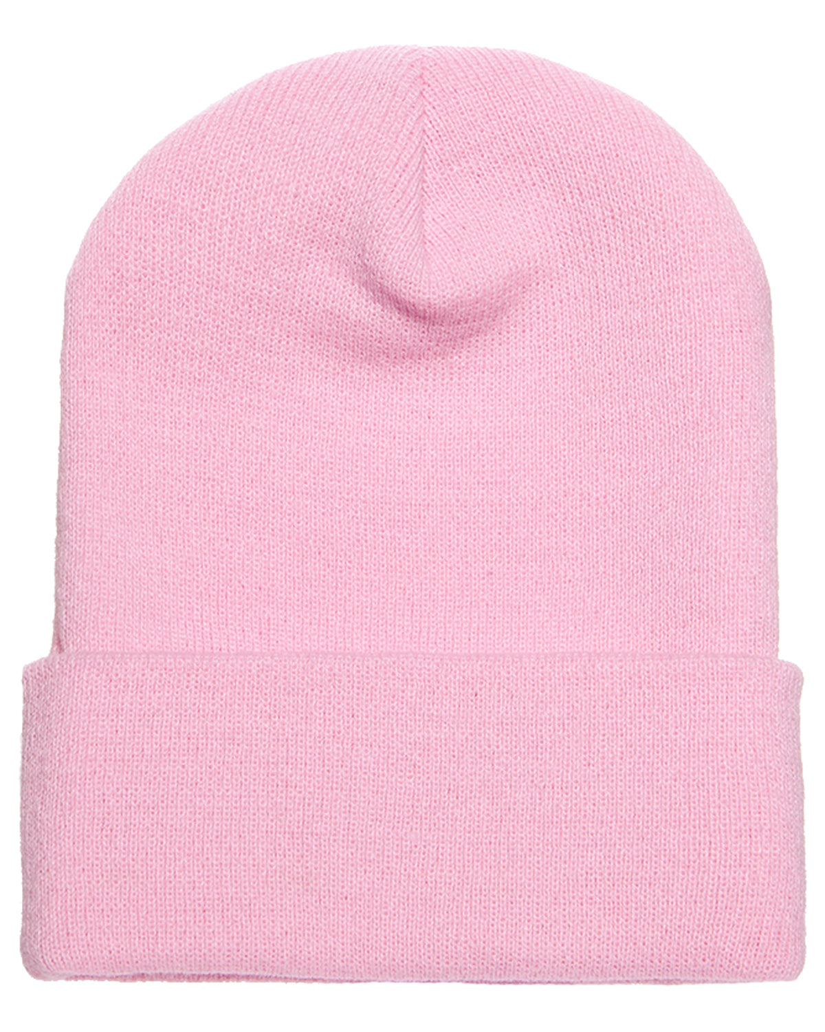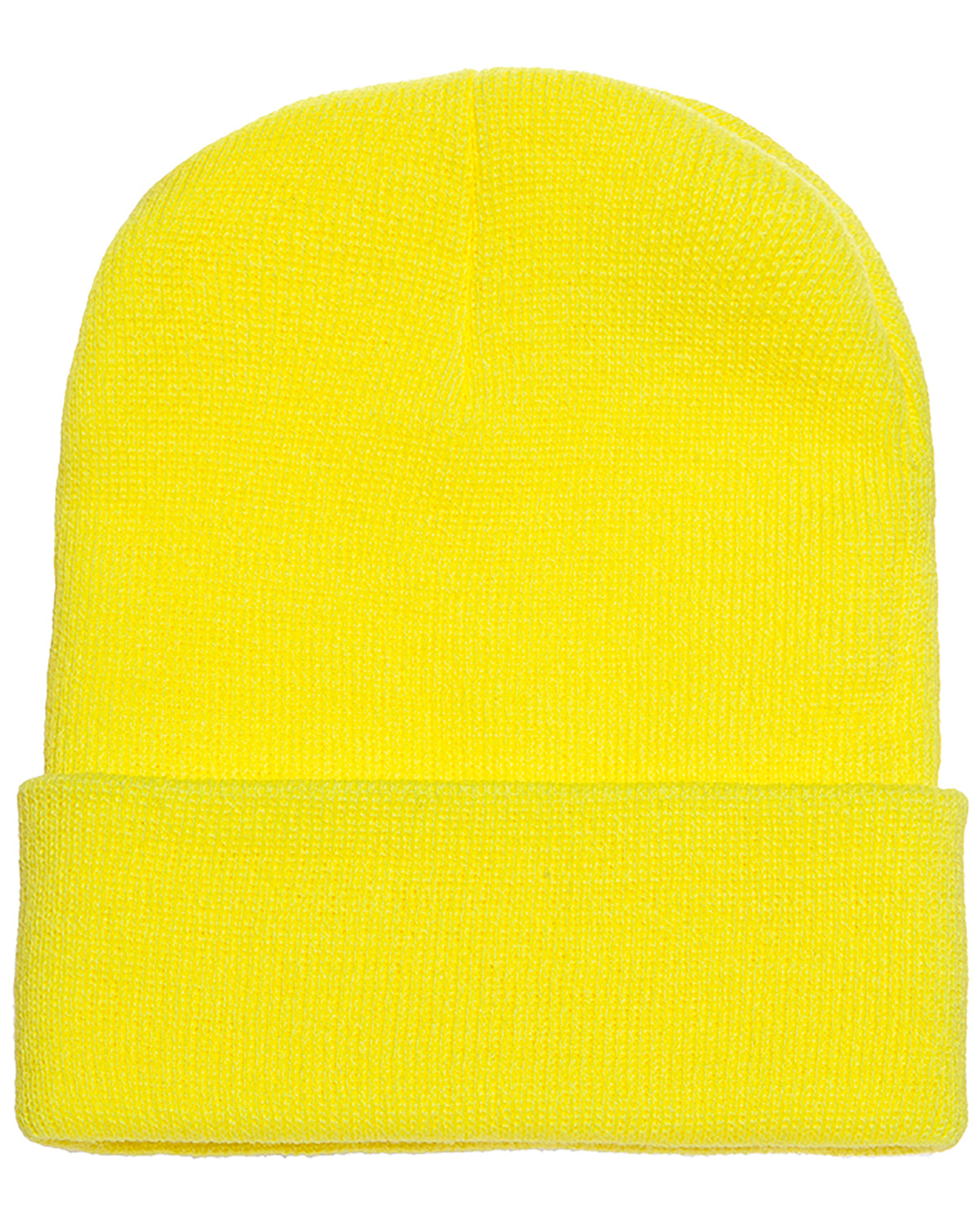 Cuffed Beanie Details: Yupoong brand; 100% turbo spun acrylic knit; hypoallergenic; 12-inch in length; hand washable.