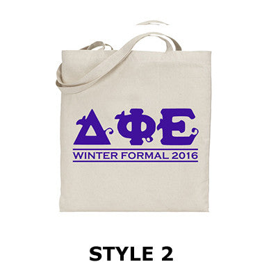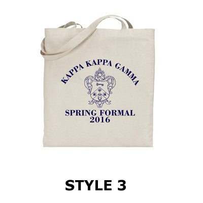 Surprise your formal guests with this Sorority Formal Printed tote bag that's perfect for your everyday needs! Design 1 comes with your Greek letters and formal information underneath in the font you see above. Design 2 comes with your Greek letters in the font you see above and your formal information underneath. Design 3 comes with your crest and name written out above. Please select your letters and formal information!