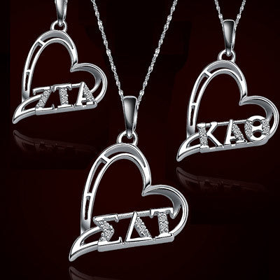 This Heart Charm is made specifically for the Sororities listed on the dropdown above. The charm comes with Lab Created Diamonds on the Greek symbols and charm is made of Sterling Silver. Chains for this heart charm can be ordered as well on the dropdown below - if you would not like a chain, please select the NO option on that dropdown. We have 16-inch and 18-inch sterling silver chains to accompany this charm. If your group is not listed on the dropdown but are interested in ordering one, please call customer service to find out more details. Rush service is available for 20% of the total and this service can be selected during checkout.