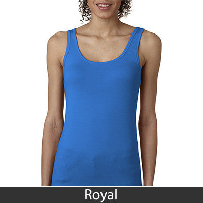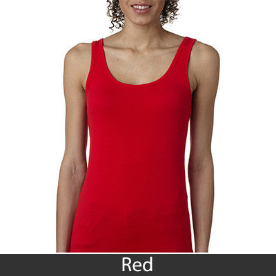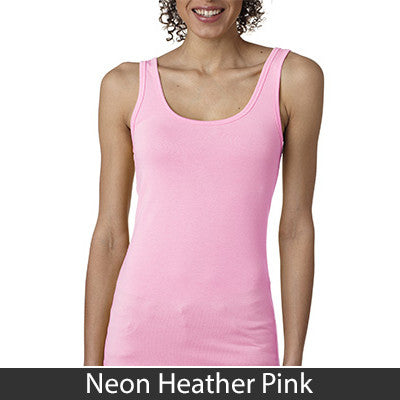 Tank Features: Next Level Apparel; 57% combed ring-spun cotton, 38% polyester, 5% spandex; 4.3-ounce; fabric laundered for reduced shrinkage; 40 singles for extreme softness; self-fabric binding; tear-away label; ladies sizing.