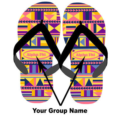 These custom printed flip-flops can be made for any Sorority. The flip-flops come in the colors shown with your Sorority name written out in the spot shown on each flip-flop. Comes in sizes Small - XL, and they are made of rubber.