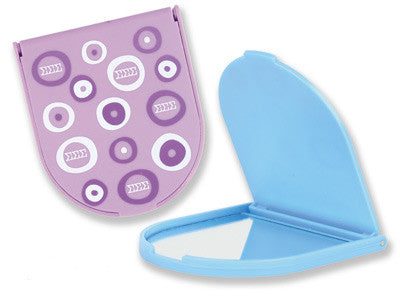Sorority pocket mirror is perfect for on-the-go check-ups. Mirror comes in your sororities' appropriate colors and features your sororities' Greek letters on the top. Mirror is composed of plastic; 2.75 inches x 3.5 inches. Rush service is available for 20% of the total price, this service can be selected during checkout.