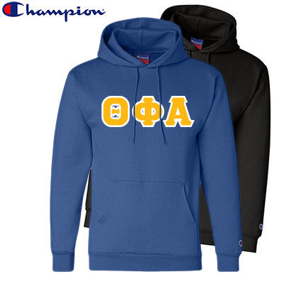 Get 2 Theta Phi Alpha Champion 9-ounce unisex/men's sized hoodies at a discounted price. These Champion 9-ounce unisex/men's sized hooded sweatshirts are made specifically for Theta Phi Alpha and come with 4-inch twill sewn-on Greek symbols on the front of the garments. Price is for 1-color solid twill letters.