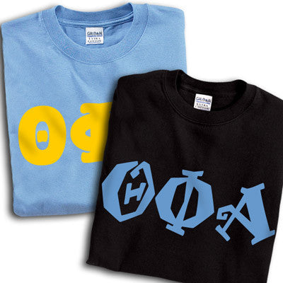 Get 2 Theta Phi Alpha printed t-shirts for almost the same price as getting one! 8 fonts and multiple colors to choose from. Gildan 5.3oz. 100% cotton, preshrunk t-shirts. Double-needle stitching throughout, seamless topstitched collar, taped neck and shoulders. Ash color is 99% cotton, 1% polyester, Sports Grey color is 90% cotton, 10% polyester, Heather Cardinal, Dark Heather and Heather Indigo are 50% cotton and 50% polyester. Rush service is available for 20% of the total price, this option is available during checkout. This is a PRINTED item. This item does NOT have sewn on twill letters. Any questions, please contact customer service.