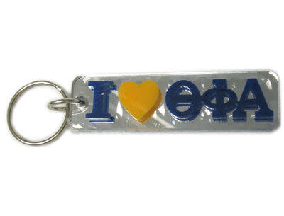 This Theta Phi Alpha I Love Keychain comes exactly as shown. There is a mirrored background on both the front and the back of the keychain. Rush service is available for 20% of the total price, this service can be selected during checkout.