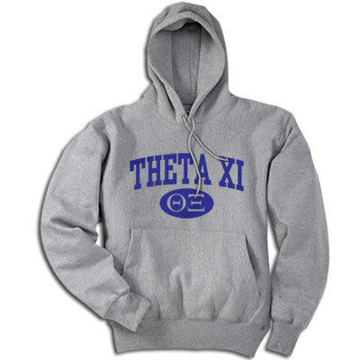 Theta Xi vertical arc printed unisex/men's sized hooded sweatshirt comes with the design as shown. You can choose your Hoody color and print color below.