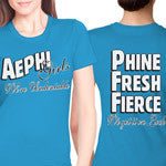 All designs can be changed for your organization. Shirts can be printed with any color ink and on any color shirt. We will assume a dark shirt and colors provided in artwork, unless you state differently. Price includes 2 color front and 2 color back, all screens and art time. Rush service is available. Minimum order is 24 pieces. For less then minimum pricing, please call. In box below please put in shirt sizes(i.e. 10L, 14M.) and group. Also please make sure to change the quantity box to the number of shirts that you are ordering so that your price is correct. In the comments section- please make any changes you need- ie. name, ink etc. Group discounts!