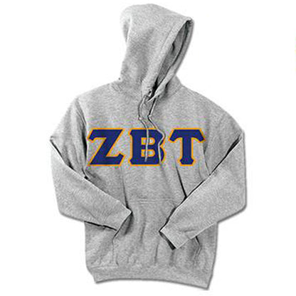 Sweatshirt will come with sewn-on twill Greek letters for Zeta Beta Tau. We have selected your letter color / border color (pictured) for you to make it easier and to Rush the product out to you.