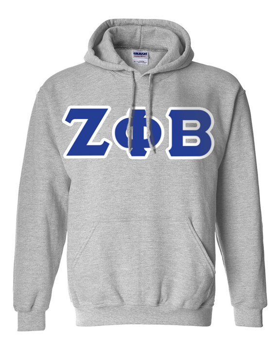 Our best selling sweatshirt since 1989 not only features great quality but now it has a great Low Price! Gildan unisex/men's sized hooded sweatshirt comes with 4-inch twill sewn-on letters across the front for Zeta Phi Beta Sorority.