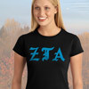 This Gildan ladies' tee is made up of the brand new Soft Style material and comes with the Zeta Tau Alpha Greek symbols printed across the front in 3-inches in the font of your choice. This is a printed item and does NOT have twill letters.